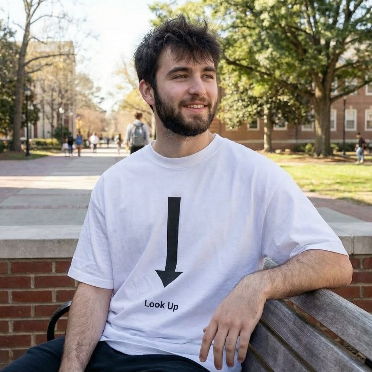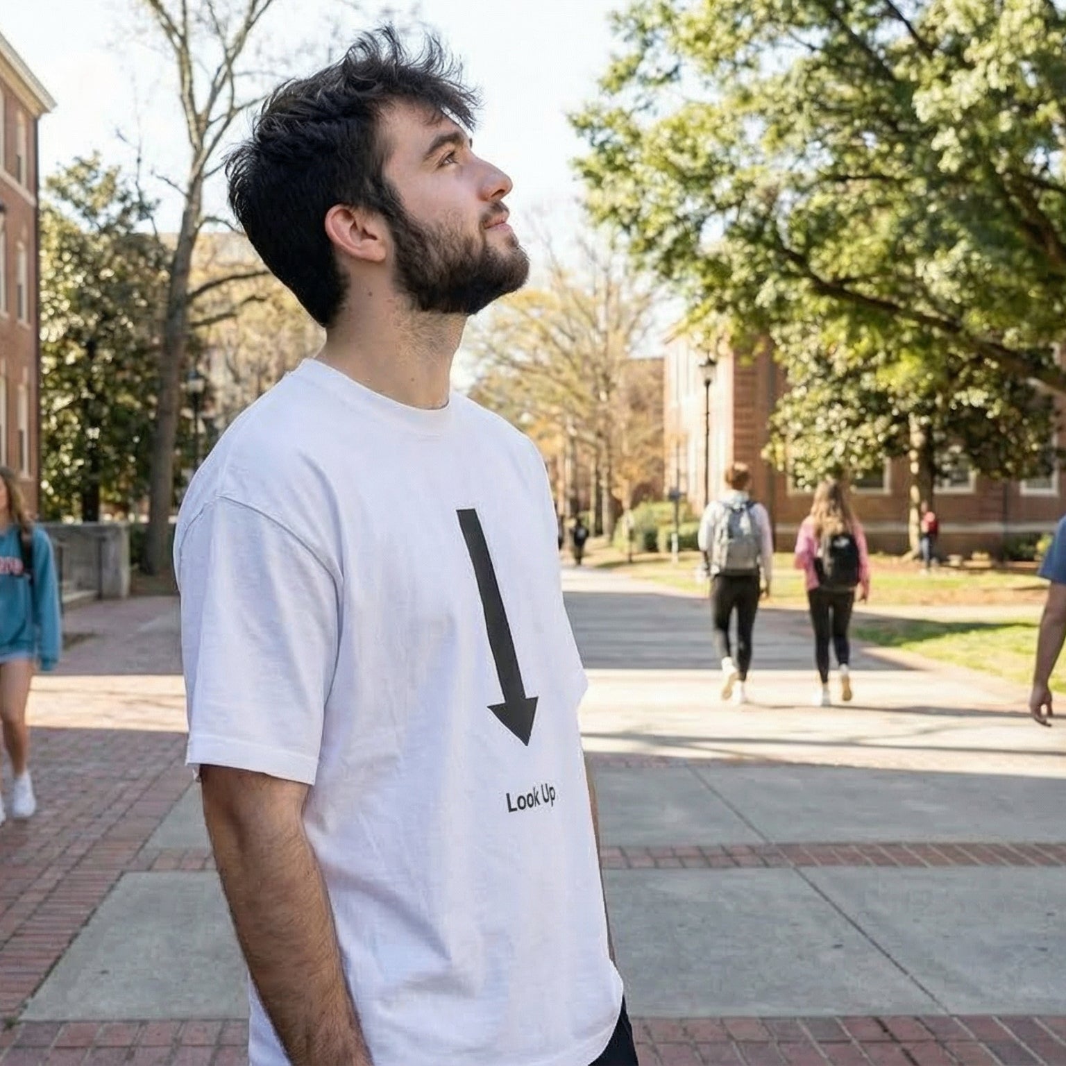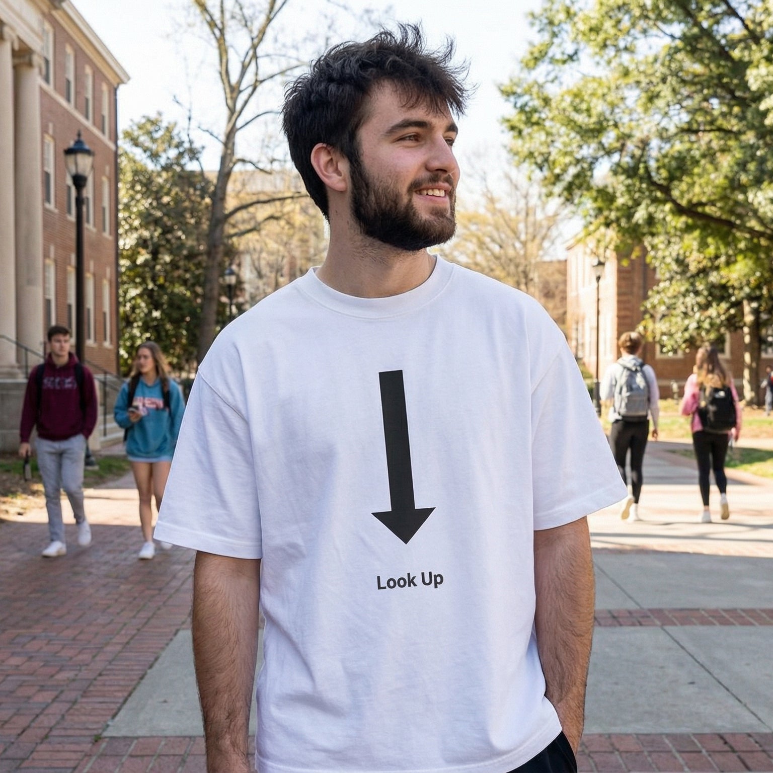The Shorttall® “Look Up” Tee is designed for people who love minimal humor with maximum impact. The bold downward arrow paired with the text “Look Up” creates a clever, unexpected visual twist that never fails to grab attention and spark a smile.