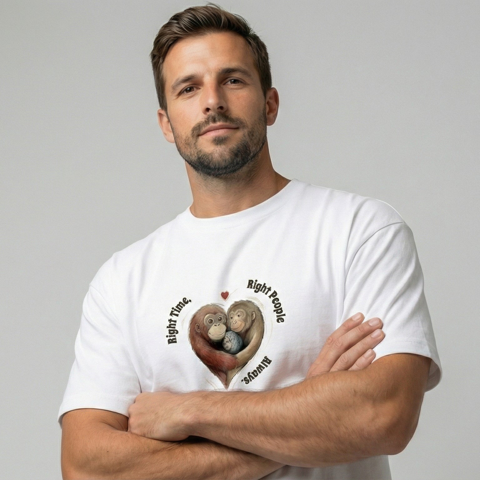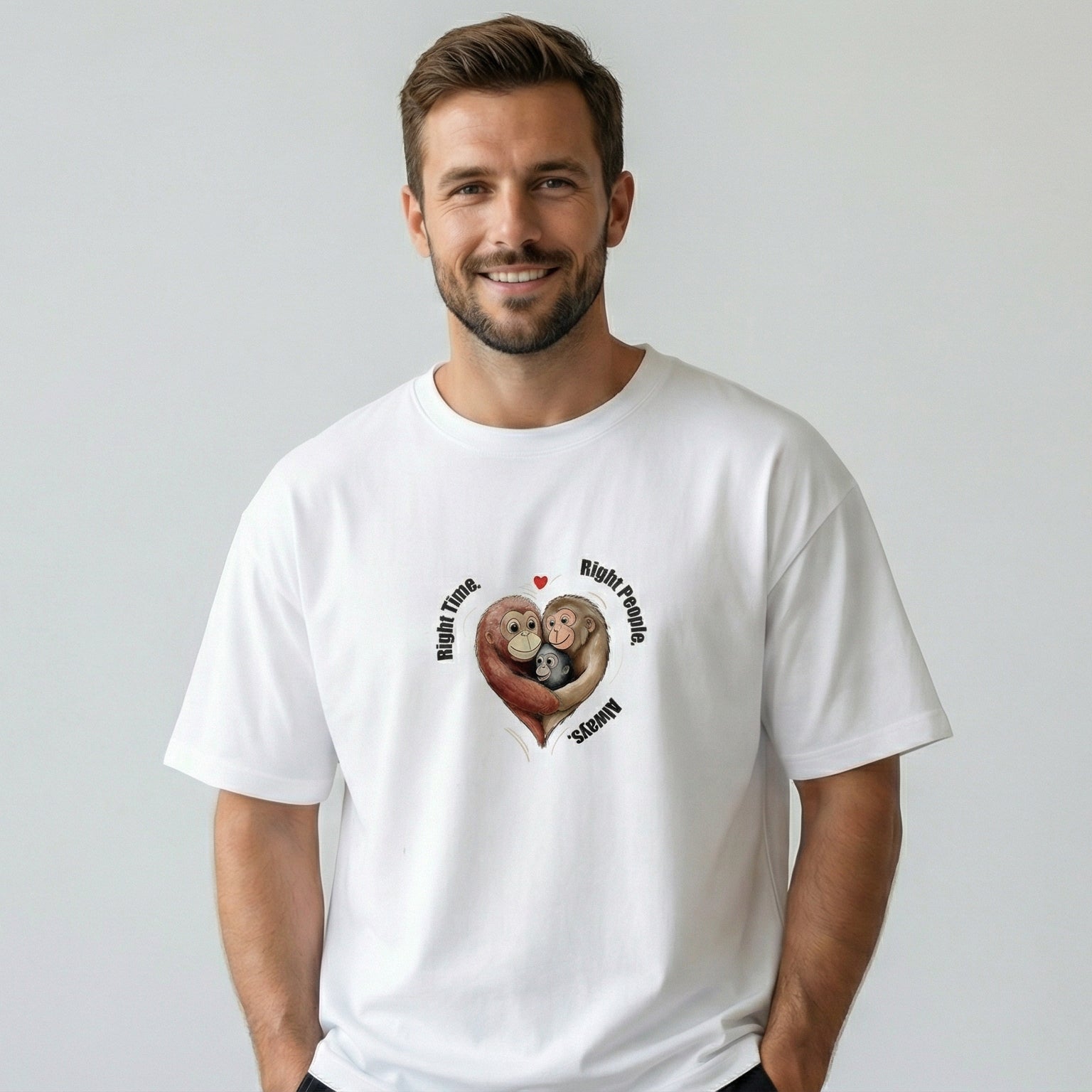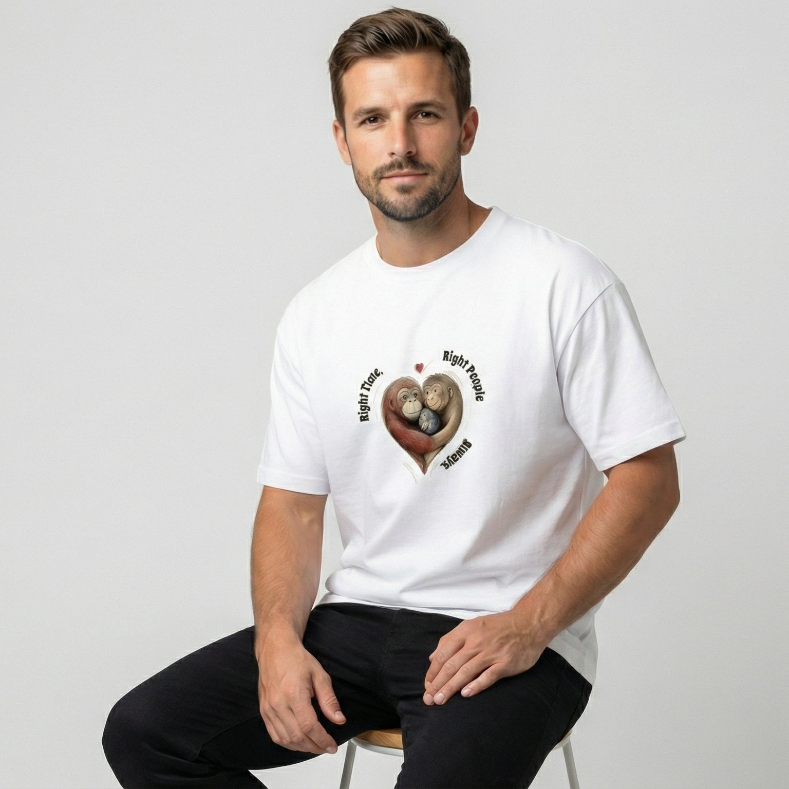 The “Right Time. Right People. Always.” Bond Edition tee celebrates the magic of perfect timing and the people who make life meaningful. Featuring a heart-shaped embrace illustration with a warm, uplifting message, this design is all about connection, destiny, and togetherness.